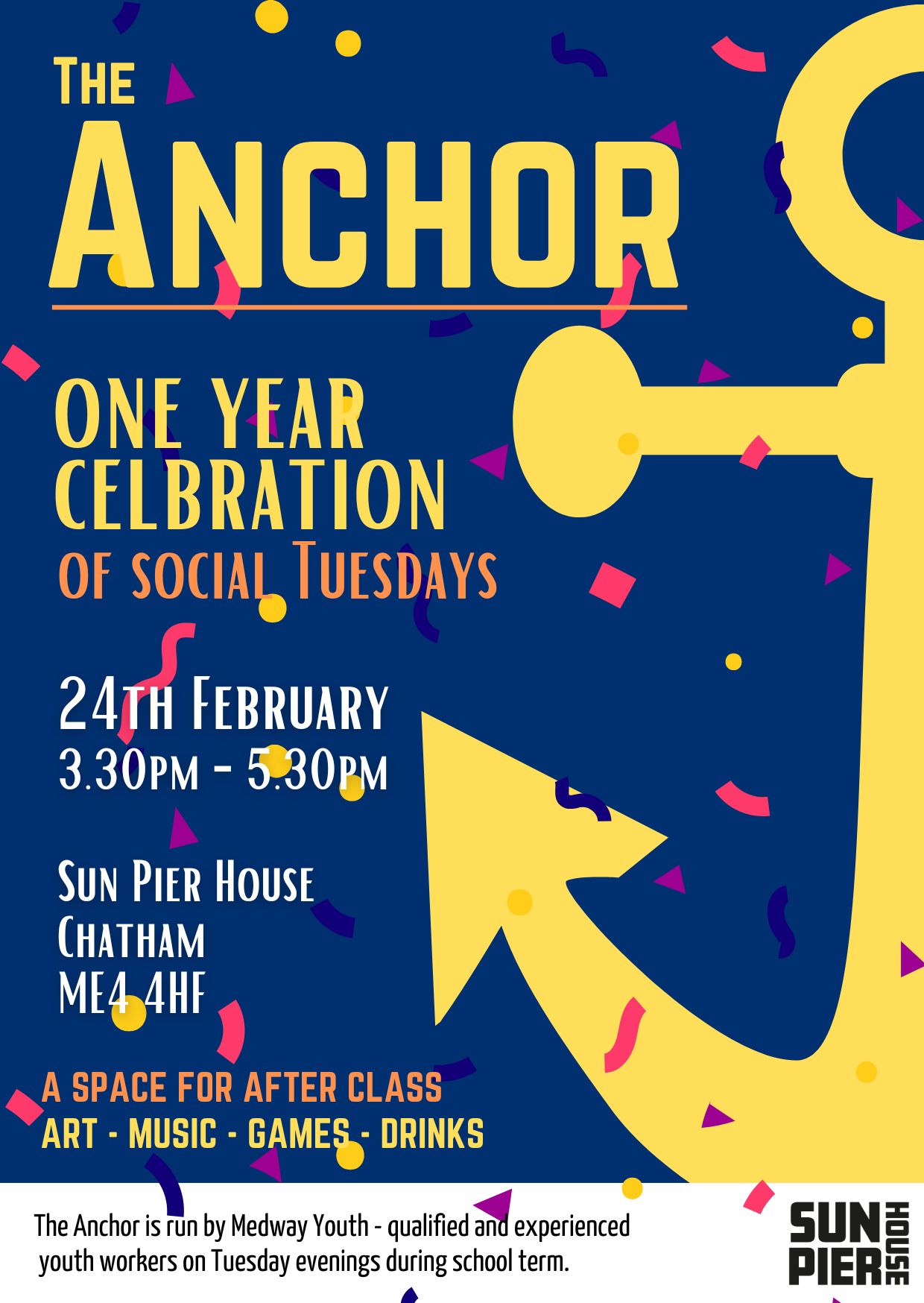 Sun Pier House has always been a bit in between – not quite a pub, but more than just a café. That’s why we love being part of Intra (which literally means “between”)! So, it made perfect sense for us to create a space for teens who are also in that in between stage – too old for traditional youth clubs, but not quite ready for the pub. Medway Youth agreed, and The Anchor was born!